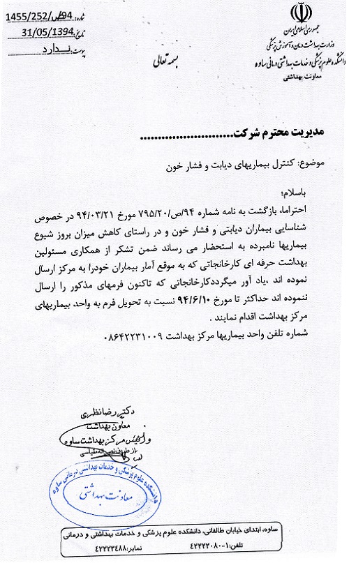 + نوشته شده در شنبه ۳۱ مرداد ۱۳۹۴ ساعت 13:23 توسط واحد مهندسی بهداشت حرفه ای ساوه