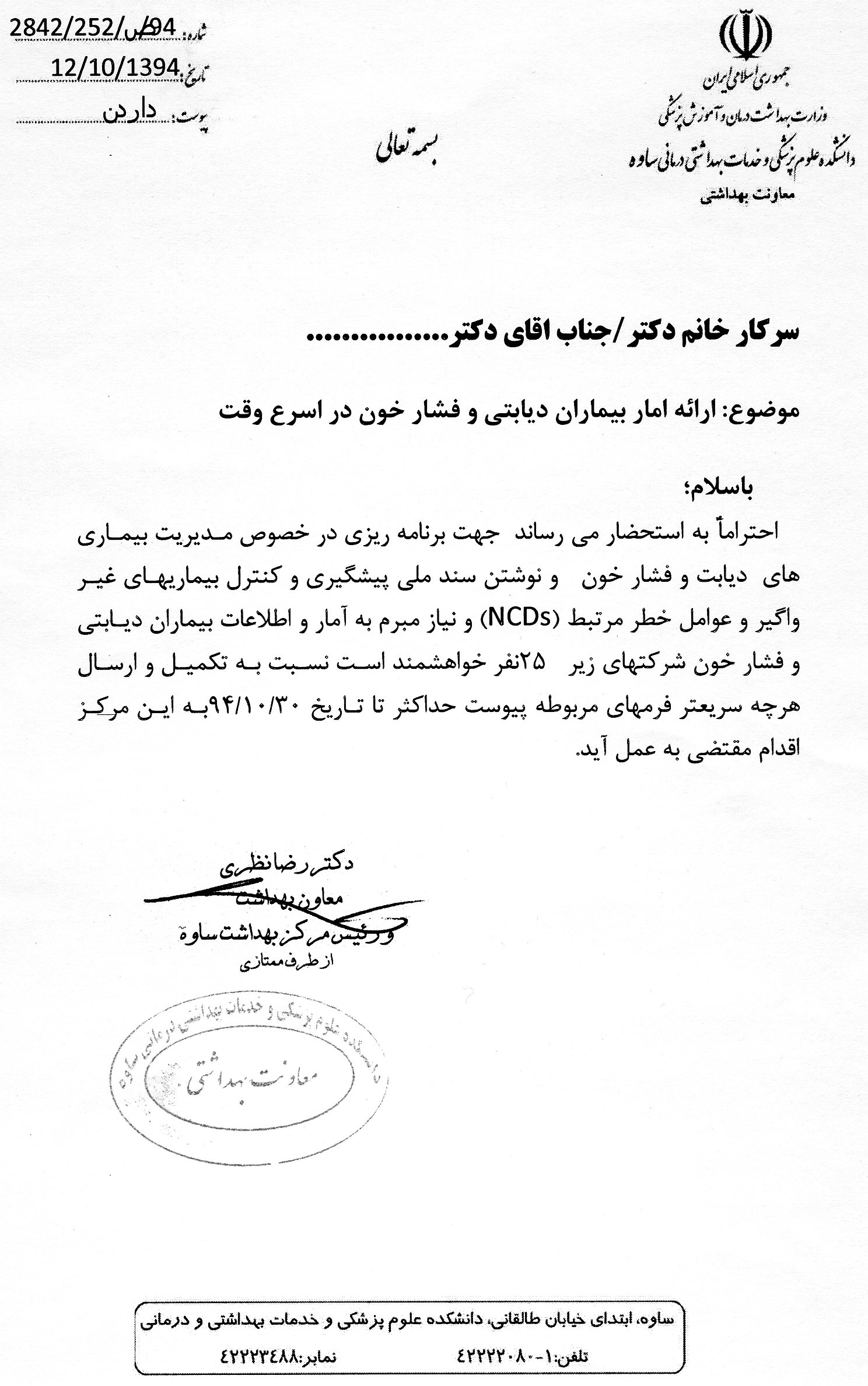 + نوشته شده در یکشنبه ۱۳ دی ۱۳۹۴ ساعت 12:37 توسط واحد مهندسی بهداشت حرفه ای ساوه