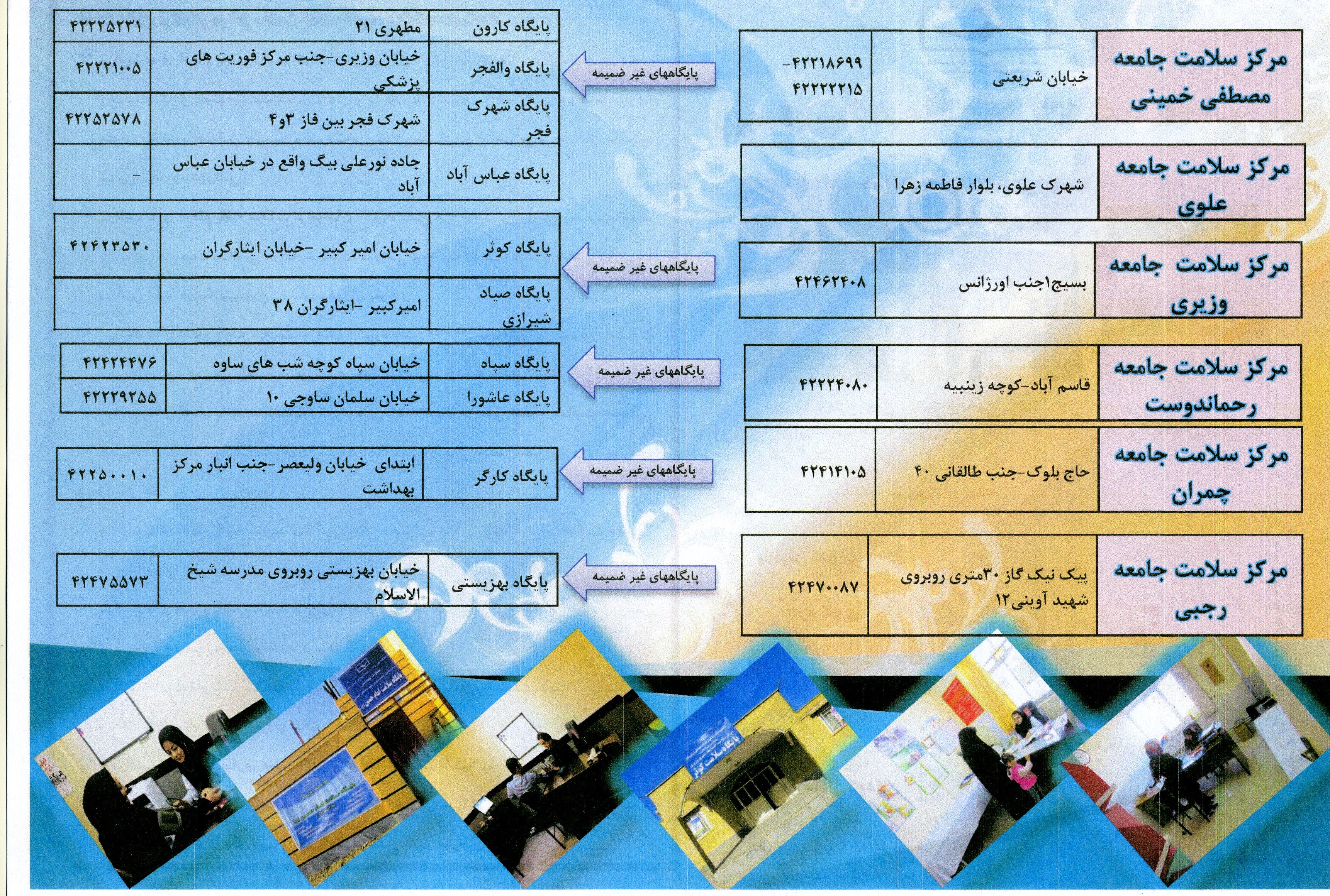 آدرس مراکز سلامت جامعه شهری و پایگاههای تابعه جهت ارجاع و کنترل دیابت و فشار خون کارگران مبتلا